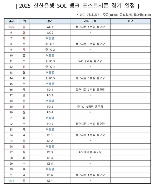 ⚾ 2025 KBO 포스트시즌 일정
